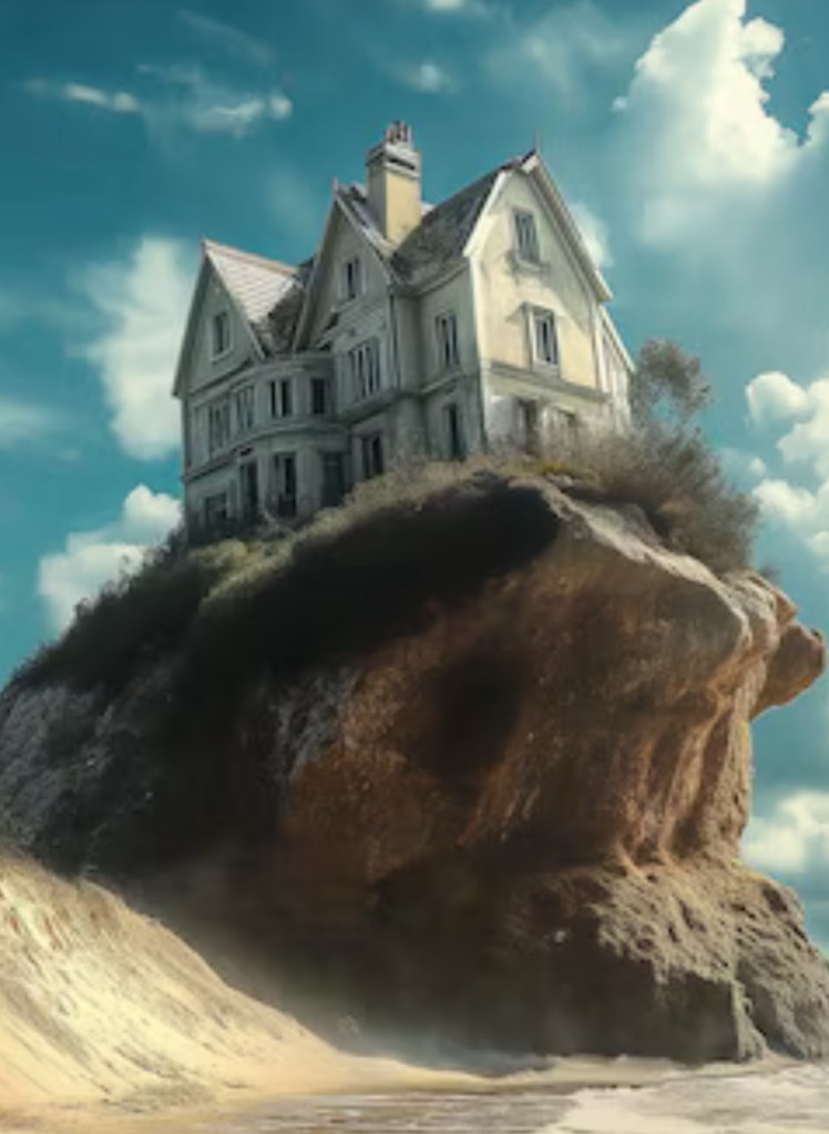 ‘Therefore, everyone who listens to these words of mine and acts on them will be like a sensible man who built his house on rock. Rain came down, floods rose, gales blew and hurled themselves against that house, and it did not fall: it was founded on rock. But everyone who listens to these words of mine and does not act on them will be like a stupid man who built his house on sand. Rain came down, floods rose, gales blew and struck that house, and it fell; and what a fall it had!’